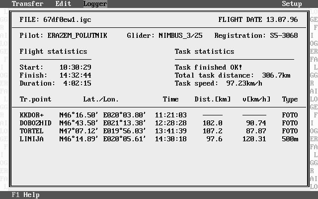 The View logger menu is for the flight analysis. All the flights being stored in the unit could be analyzed whitout data transfer to the PC (immediately after landing).